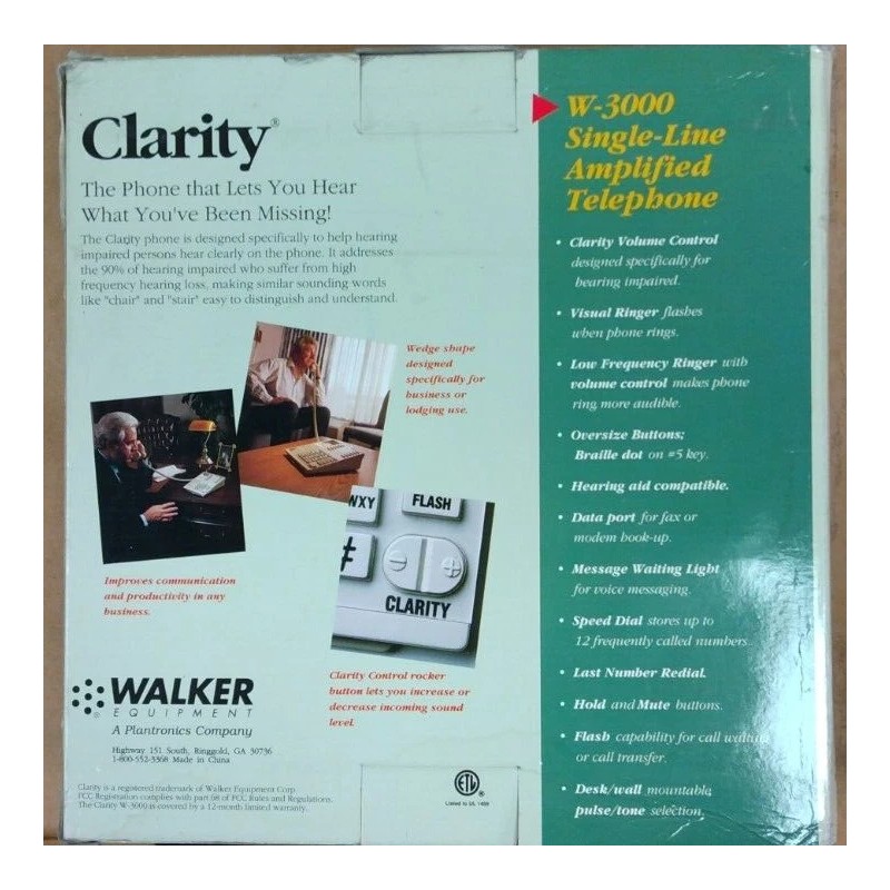 Clarity Amplified Large Button Telephone, Visual & Low Frequency Ringer - NEW
