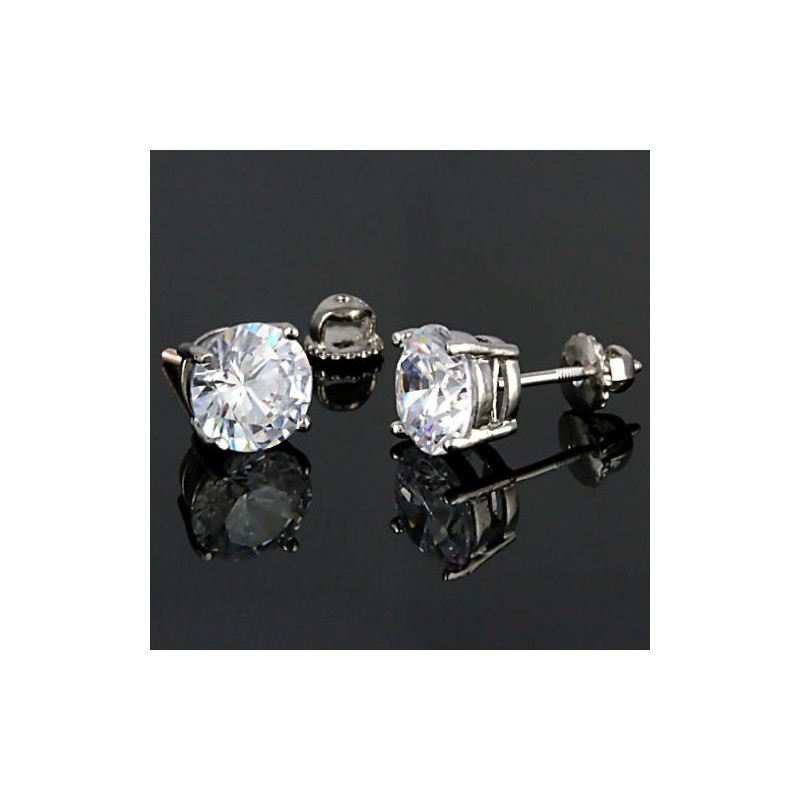Clark: 8mm, 4.0ct Brilliant Cut Ice on Fire CZ Screw-back Stud Earrings 925 Sterling Silver, 3122A