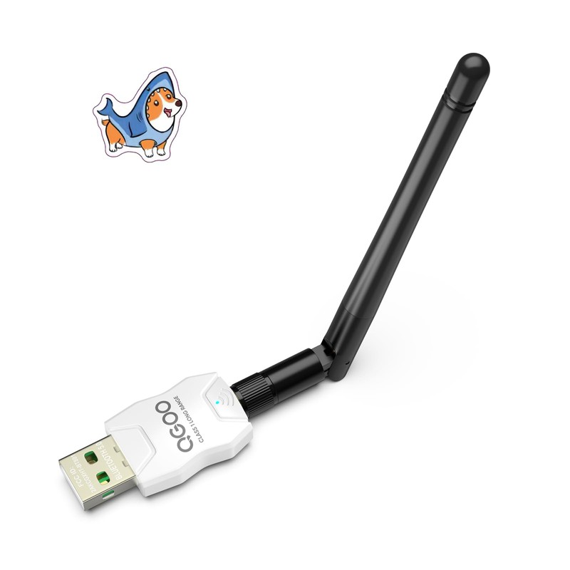 Class 1 Long Range Bluetooth Adapter for PC, QGOO USB Bluetooth Adapter for PC 5.3+EDR, Bluetooth Dongle Bluetooth Receiver Support Windows10/8.1/8/7(white-062)
