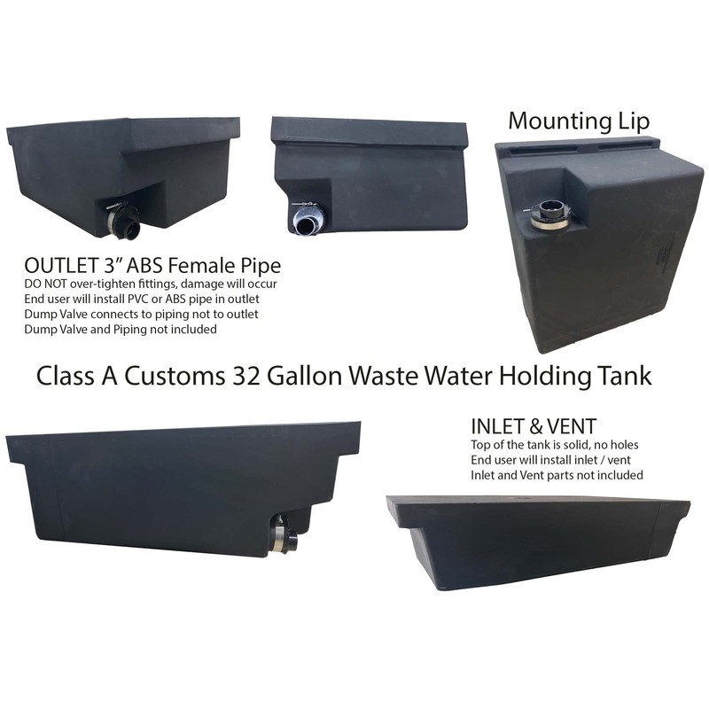 - 32 Gallon RV Waste Water Holding Tank MADE IN THE USA by Class A Customs using Medium Density Polyethylene (MDPE) Resin TANK NOT FOR FRESH OR DRINKING WATER USE – WASTE/GRAY WATER USE ONLY – Used in RV’s Campers, Trailers, Motorhomes and Tiny Houses