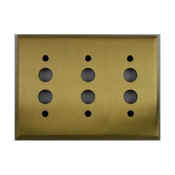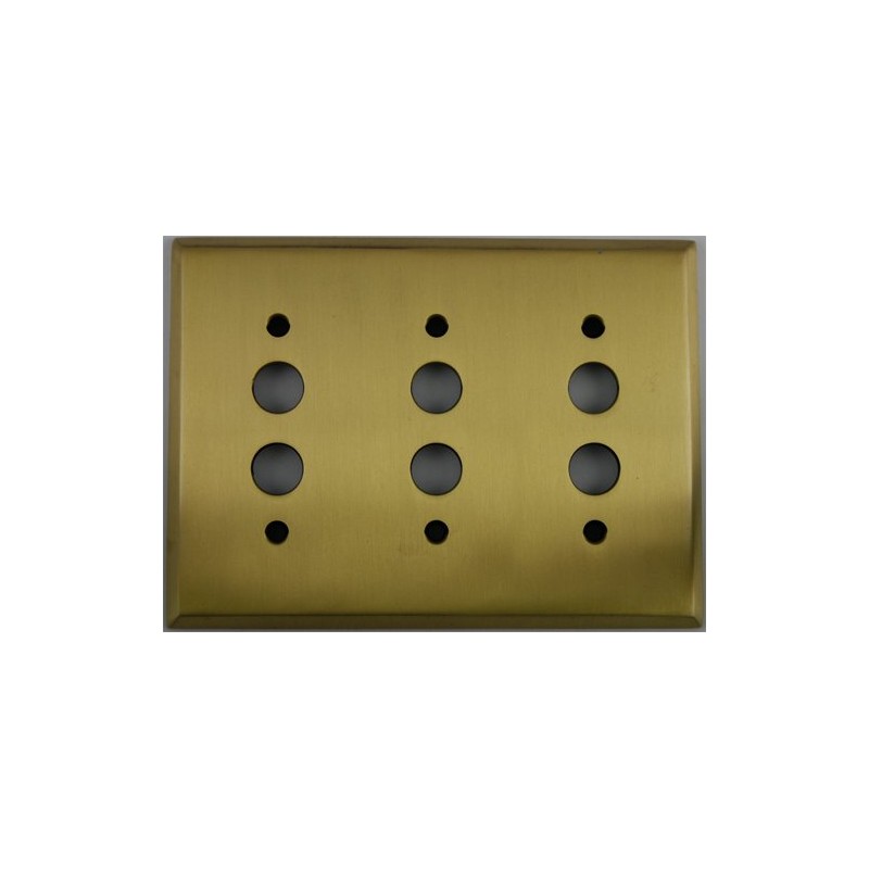 This switch plate is a triple gang push button light switch (covers three push button light switches) wall plate that has a satin antique brass finish that would be a beautiful accent to any room in your home. Made of thick solid forged brass that has a beautiful antique finish to it.