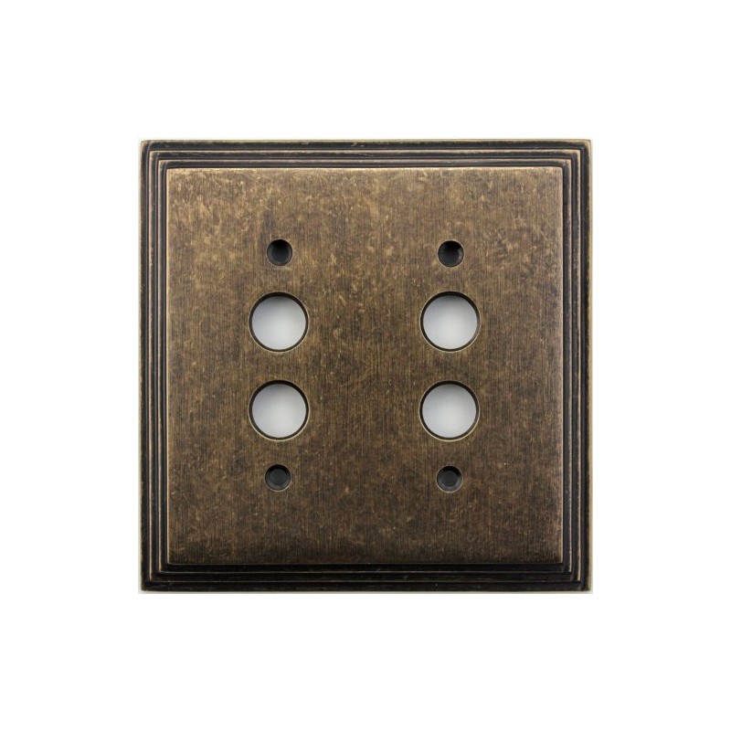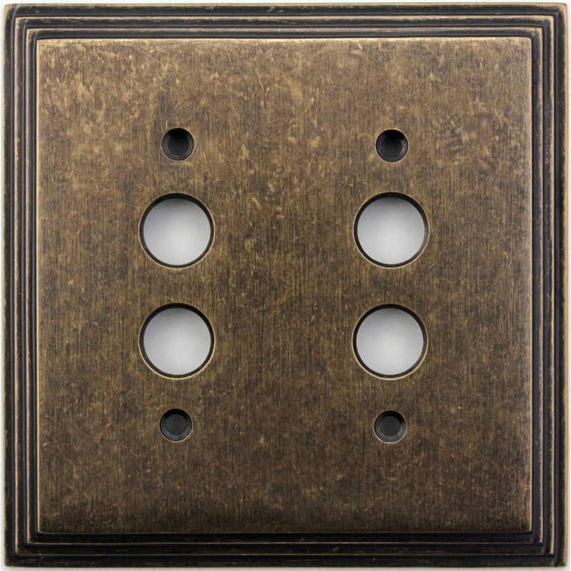 Classic Accents Deco Aged Antique Brass 2 Gang Push Button Light Switch Wall Plate