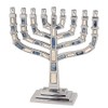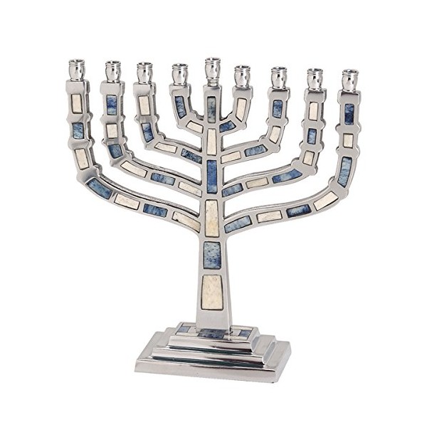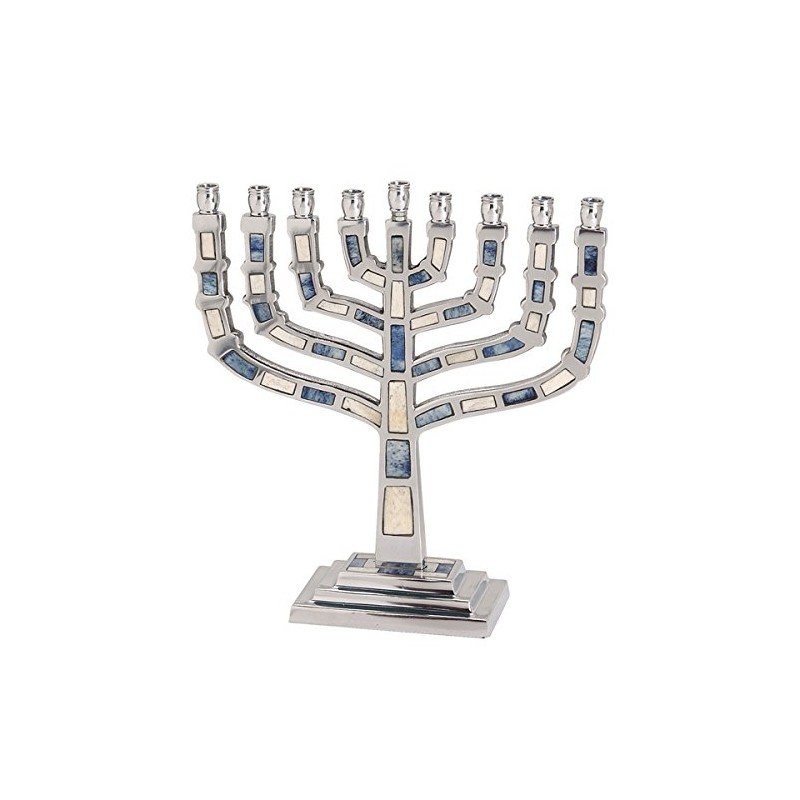 Classic Aluminum Menorah With Blue and White Inlay