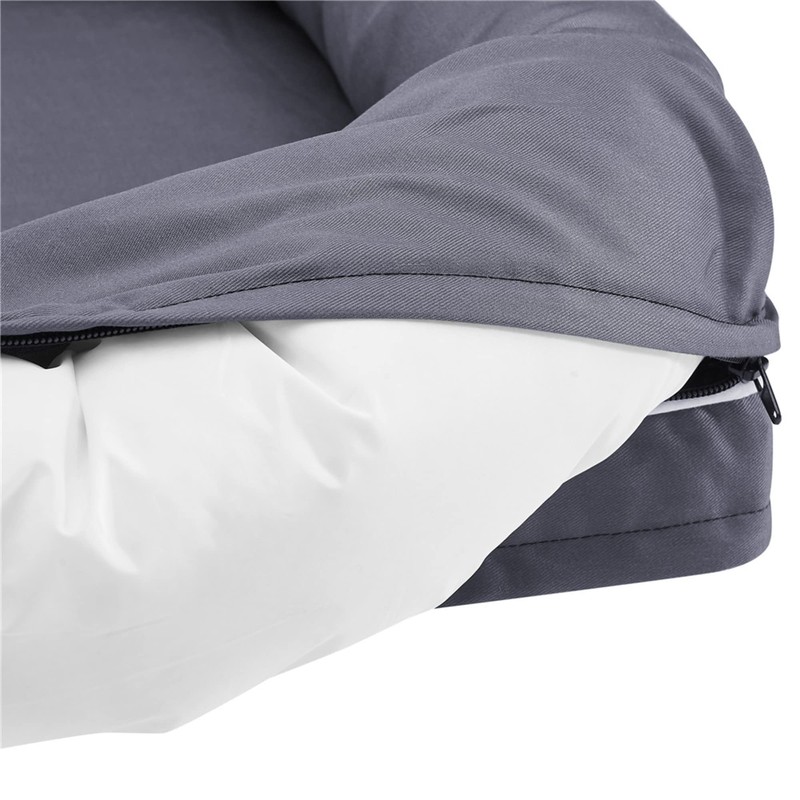 Classic Brands Ruff n' Roo Large Waterproof Bolster Cotton and Memory Foam Dog Bed with Non-Slip Bottom, Grey