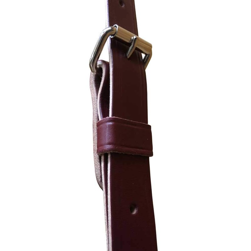 - ADJUSTABLE STRAP - This feedbag features a heavy duty, adjustable, leather strap with a roller buckle. It can be adjusted in size from an average saddle horse to a large draft mule.