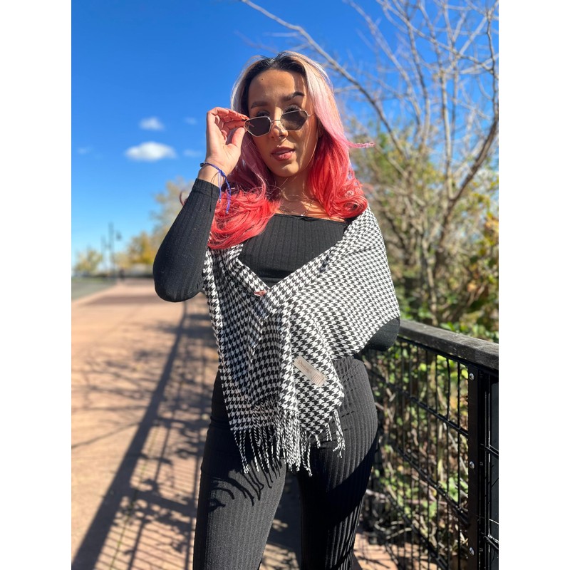 Classic Cashmere Feel Winter Scarf Super Soft Collection (black-withe Houndstooth)