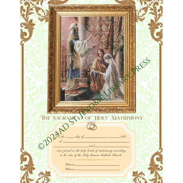 Classic Catholic Marriage Certificate 8.5" x 11" Catholic wedding record
