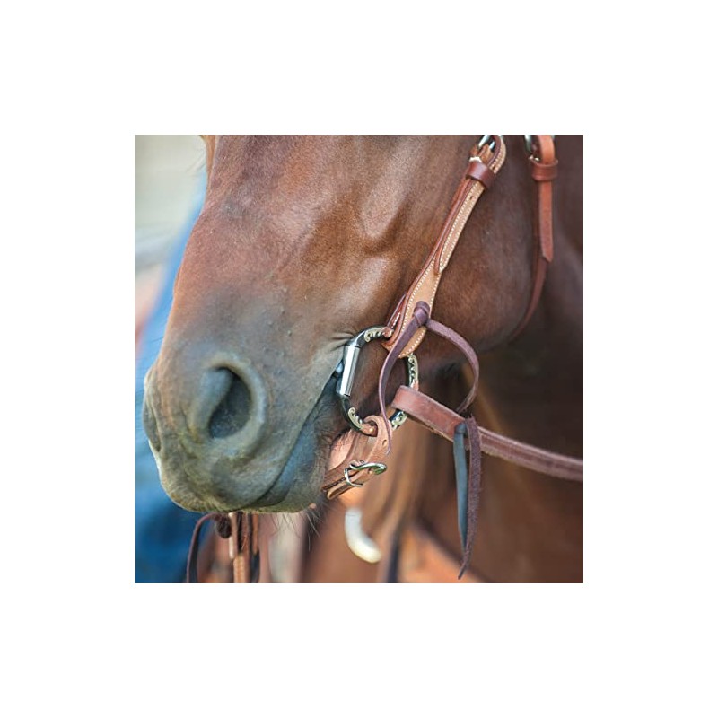 Classic Equine Bit: A necessity in any horseman’s toolbox, the D Ring Snaffle from Classic Equine has a nice weight, balance, and feel. Its slightly heavier design not only makes it durable, but it takes a deliberate action to cue the horse. When released, the bit returns quickly to a resting state, providing release of pressure and adding consistency to your hands. The Smooth snaffle is the softer of the two D ring styles. 5" wide and curved to shape the mouth. Inlaid copper promotes salivation and greater sensitivity to the bars. TBBITDR20