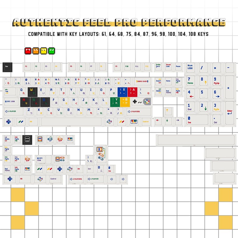 Classic Game Keycaps - Virgin PBT, 5-Sided Dye Sublimation, Cherry Profile, Matte Finish, Sound Optimization, Compatible with 61-108 Keys Layouts