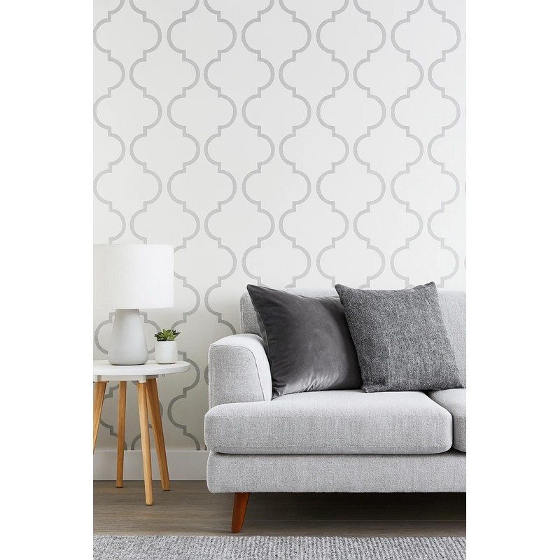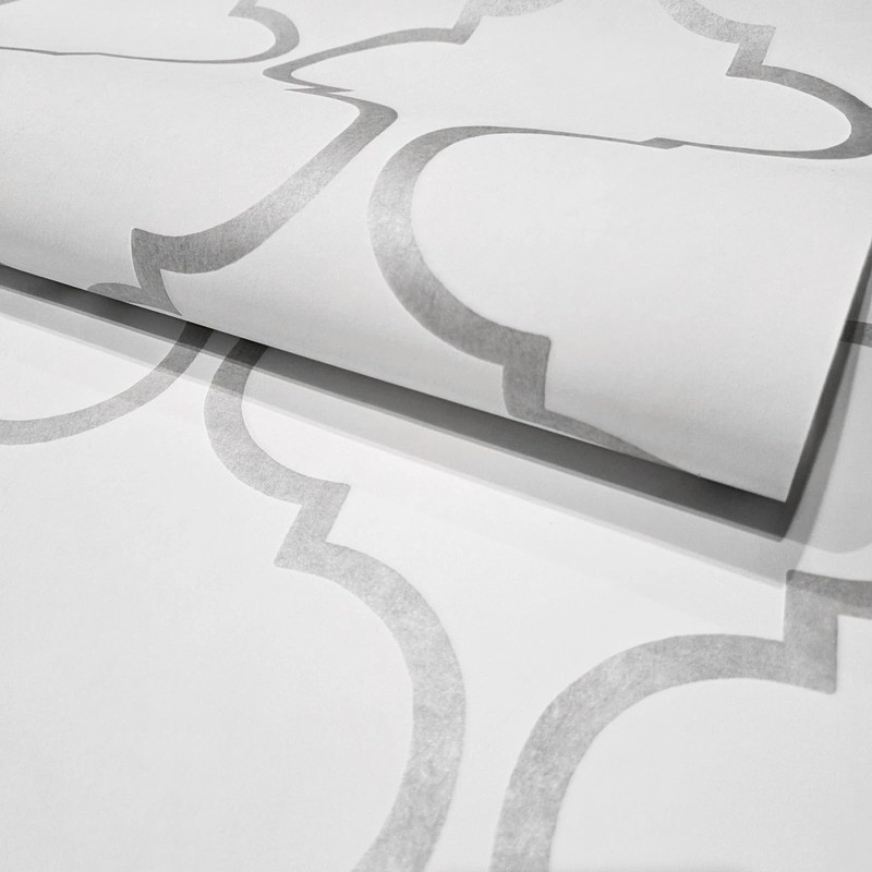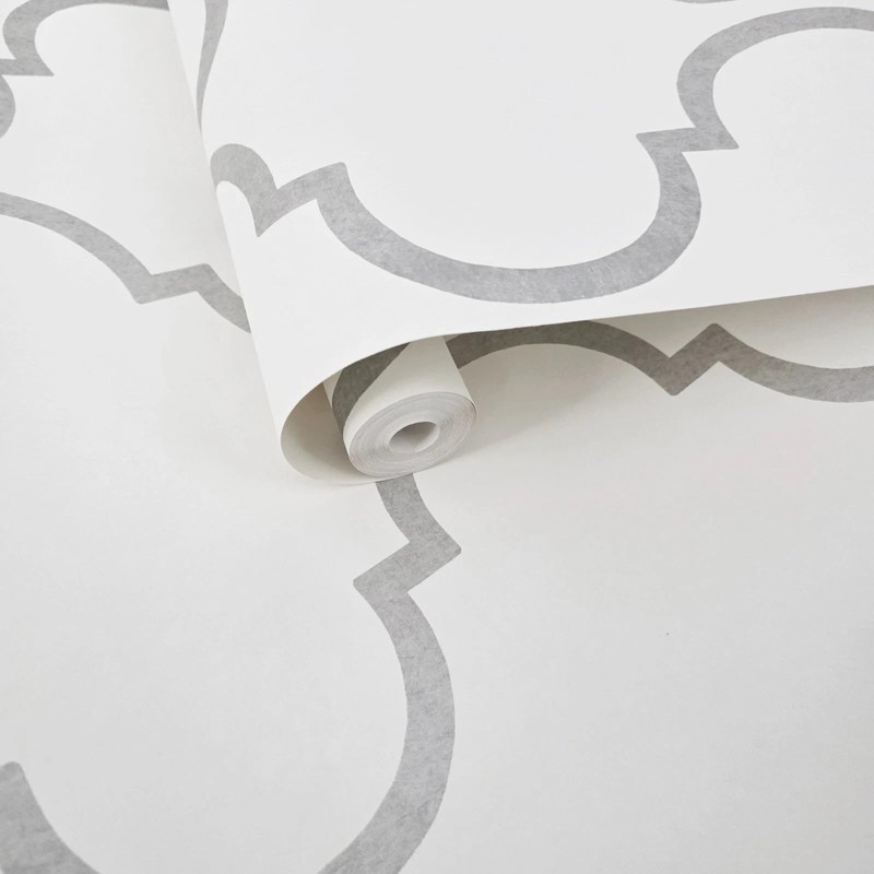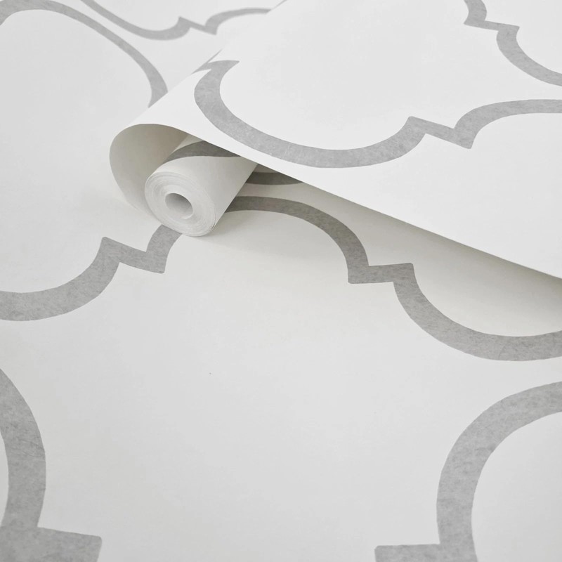 Classic Moroccan Trellis Soft Off White Gray Textured geo Ogee Wallpaper roll 3D