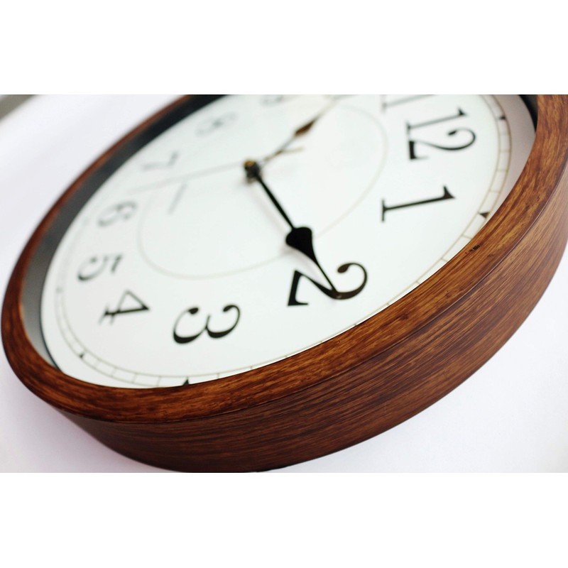 Classic Oak Rustic Farmhouse Wall Clock, Wood-Simulated Vintage Bronze, Complete Quite Non-Ticking Silent Sweep Quartz Movement, Antique Style, 12.6 inch. Diameter, Plastic Frame, ABS Glass Front