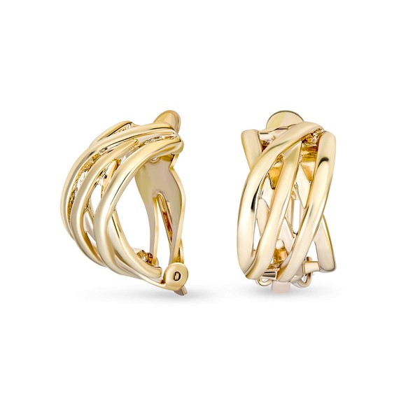 - STUNNING DESIGN - Elevate your style and add a touch of sophistication with these exquisite gold plated, clip on huggie hoop earrings specially designed for non pierced ears. Adorned with a contemporary triple x crossover design, they are the perfect accessory to stay on trend.