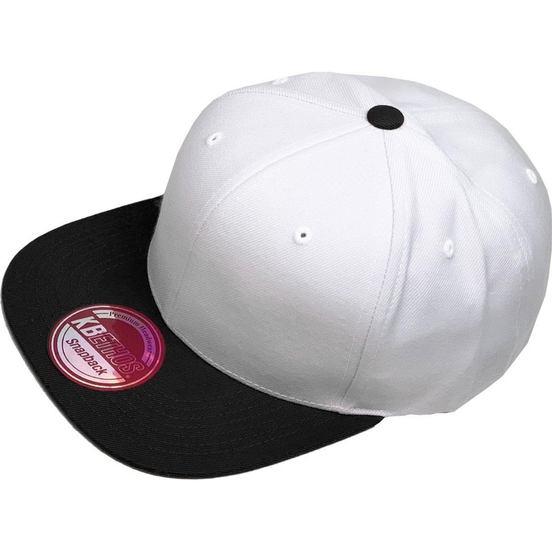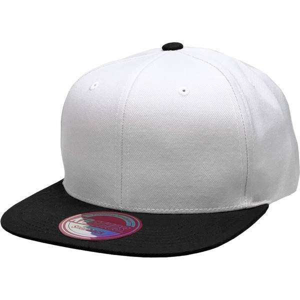 Classic Snapback Hat Blank Cap - Wool Blend Flat Visor (as1, Alpha, one_Size, White Black)