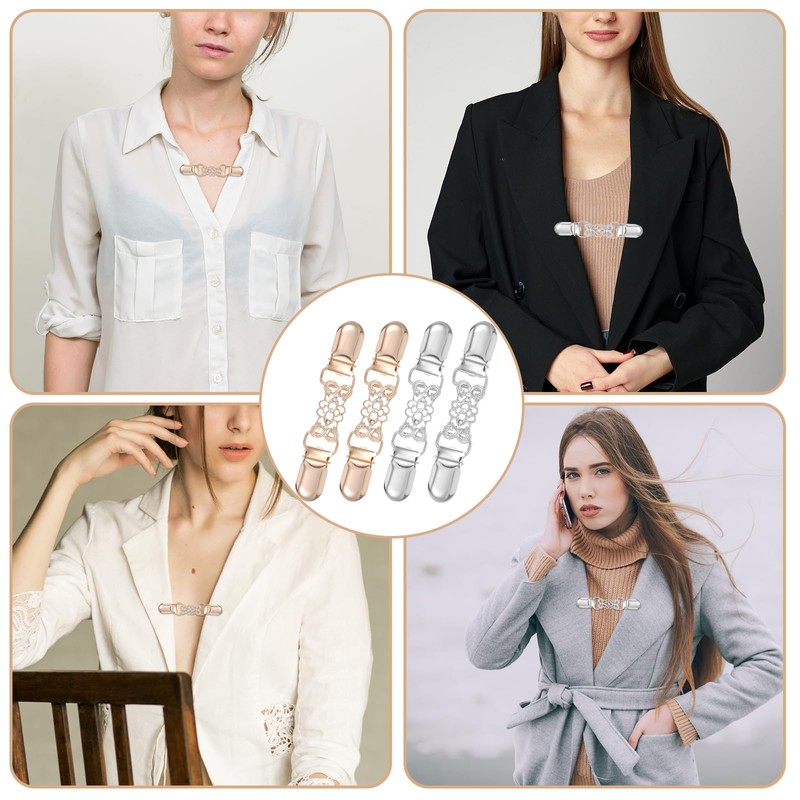 Classicseali Pack of 4 Clips for Clothing, Cardigan Clip, RCA Clip, Shirt Clips for Waists, Shirt Clip Women for Jackets, Women's Dresses, Cardigans, Pullover, Smock, Elegant Clothing Accessories