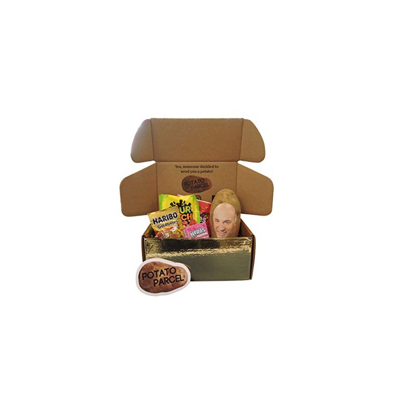 - This bundle includes 1 real Idaho Potato with your image and/or message, 1 24K Gold Surprise Gift Box, and assorted candy included!