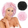 Classycoo Pack of 2 Large Sleep Caps, Adjustable Sleeping Cap for Women and Girls, Shower Cap for Sleeping with Elastic Band - for Curls Sleep Cap for Long Hair (Black + Pink)