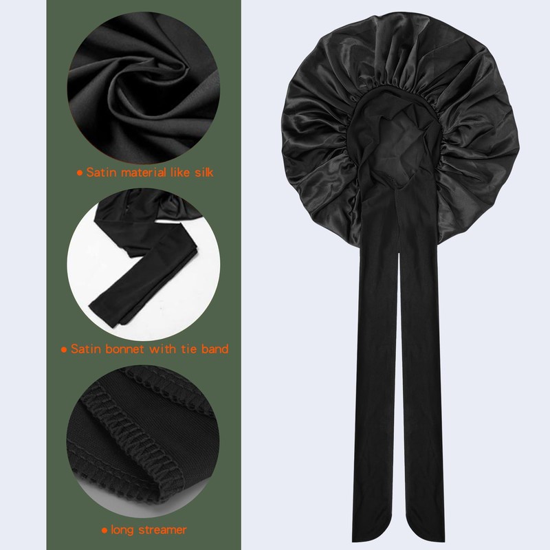 • Elastic long strap design: the night hat is made of polyester satin material, which is soft and breathable.The long strap design is used for fixation, and the silk hair cover is designed as an elastic headband, suitable for most people and hairstyles, suitable for men and women