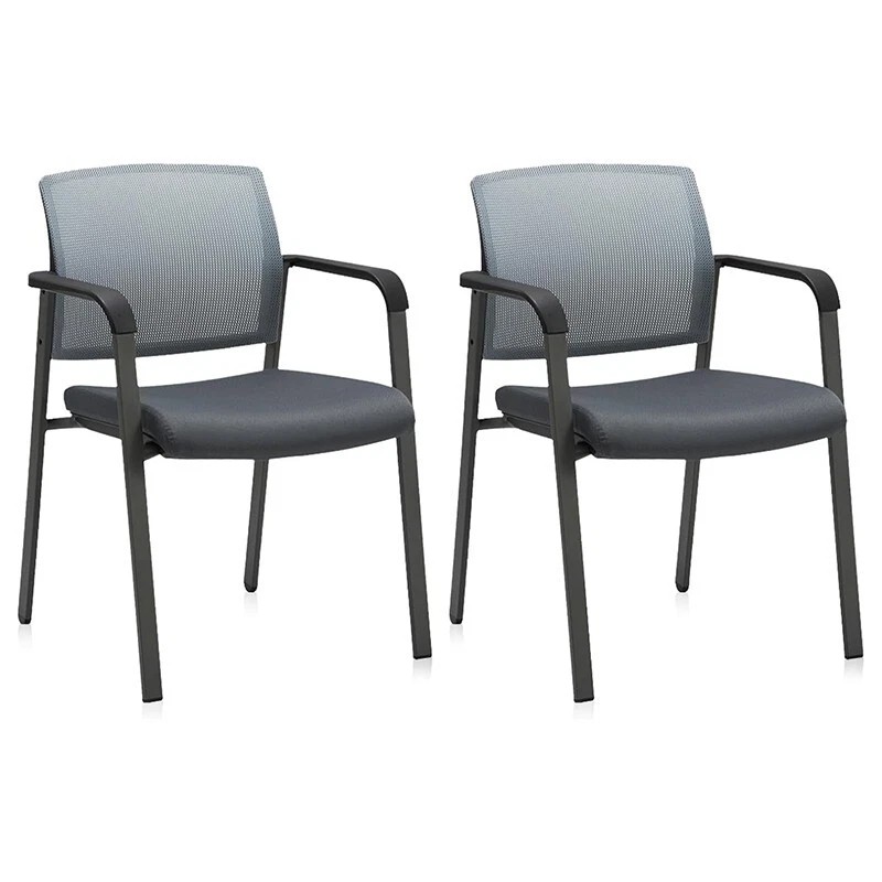 CLATINA Set of 2 Mesh Back Stacking Arm Chairs Upholstered Fabric Seat Guest Reception