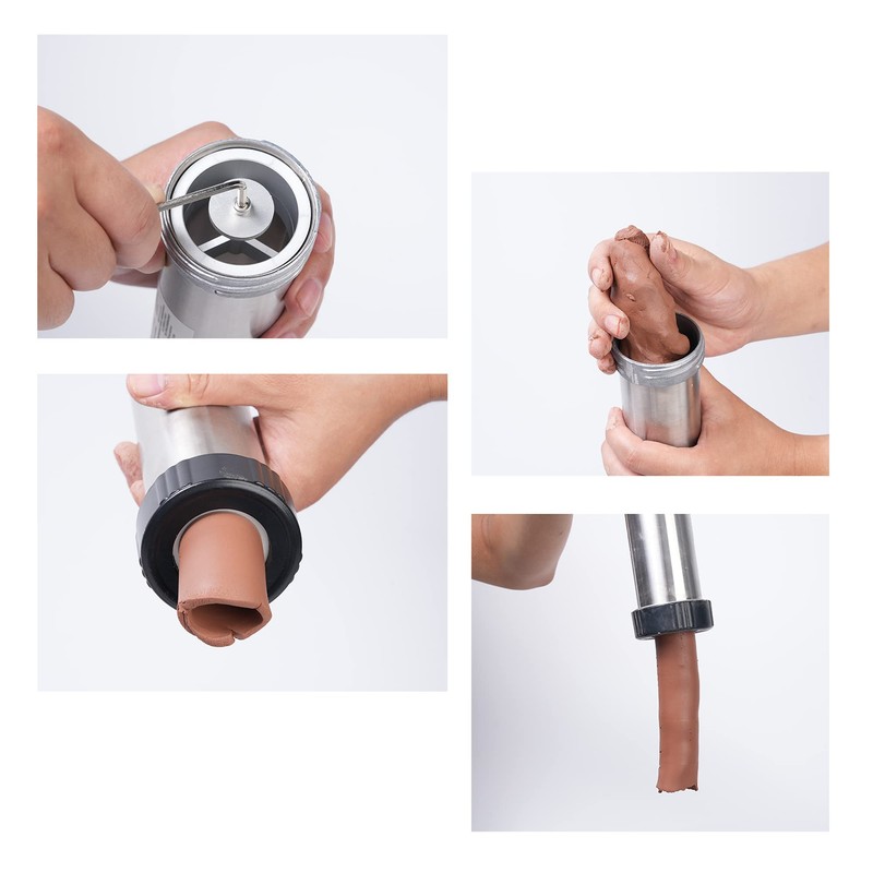 - 1✔.Our hand clay extruder set consists of 1 clay extruder gun, 12 model spacers, and 1 fixed sleeve.The main body of the clay extruder gun is made of aluminum, which is lightweight and has no sense of load. It can be used for more than 2 years after testing.