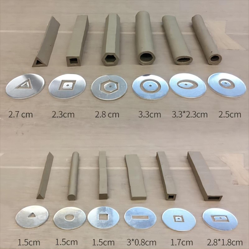 - 2✔.New clay extruder for clay moulds gaskets are made of iron material,diameter is 2.28 in,thickness is 0.16 in, with strong hardness and unique shape, they will not deform even if they are pressed hard.