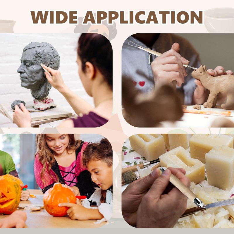 - DOUBLE-SIDED DESIGN: Our pottery carving tools offer a double-sided design, providing you with a variety of carving shapes to make your designs more versatile and captivating. This clay sculpting tools set is perfect for a wide range of applications, including cutting, pottery shaping, clay sculpting, pumpkin carving, soap carving, wax carving, preparing clay, forming shapes, and refining surfaces.