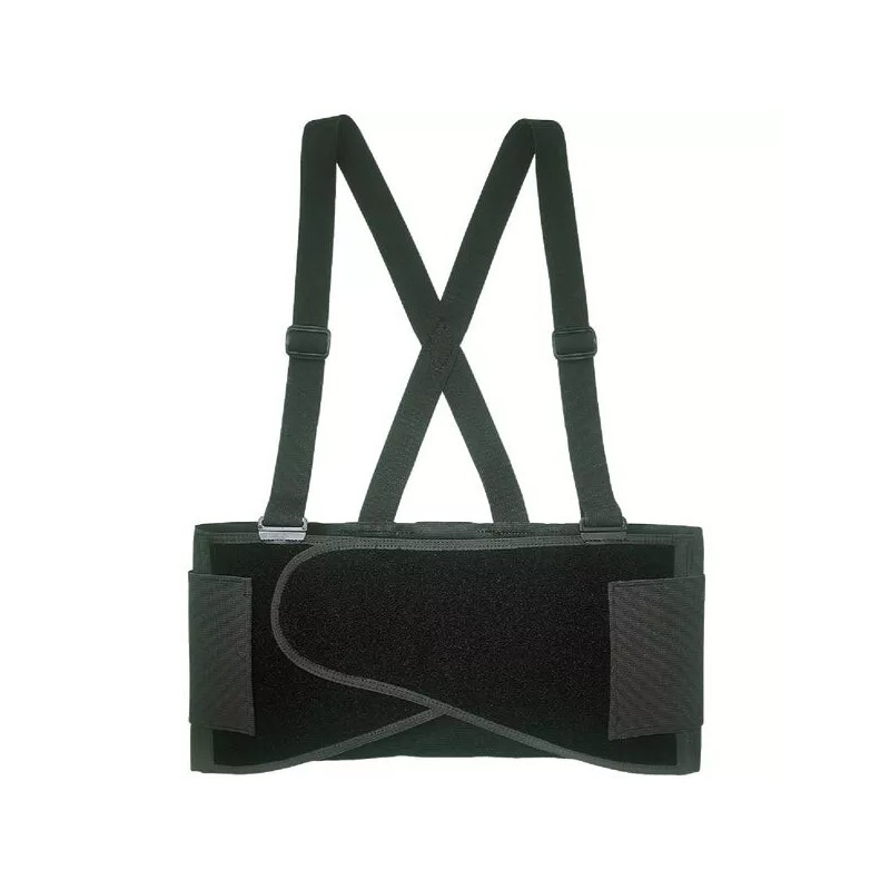 Bacbelt has adjustable elastic suspenders for a comfortable fit. Internal metal stays provide lower back support. Heavy outer elastic bands with hook and loop fastener; adjustable to provide customized, comfortable tension. Tapered front panels for comfort while bending. Designed to reduce the possibility of back stress and injury while encouraging proper body mechanics.