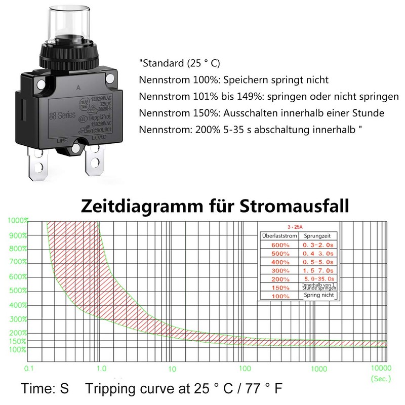 - Thermal circuit breaker (can also be used for 24-hour protection)