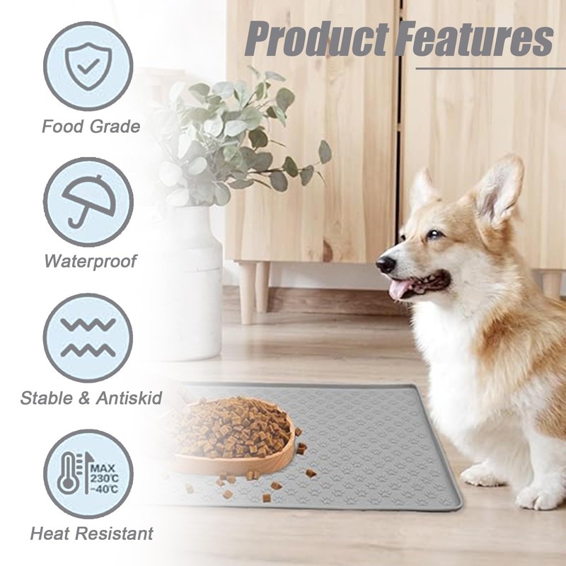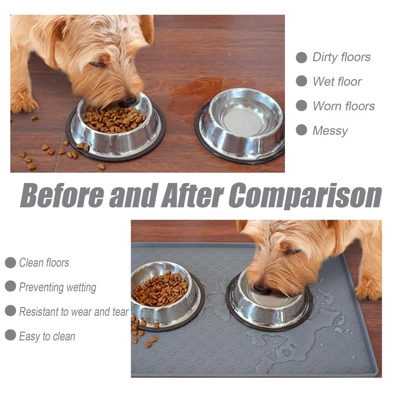 • WATERPROOF & ANTI-SLIP Our bowl mat is fully waterproof and features an anti-slip design to prevent your pet from spilling water on the floor when eating or drinking.