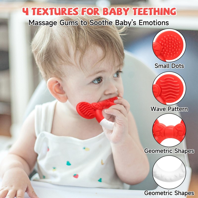 CLDY Beißring für Babys, Beißring für Babys, weich, ohne BPA, für Jungen und Mädchen ab 3 Monaten, einfache Reinigung (Rot und Weiß)