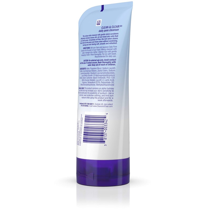 - 5.5-ounce tube of Clean & Clear Daily Pore Cleanser to gently cleanse away impurities for skin that feels soft, smooth and refreshed