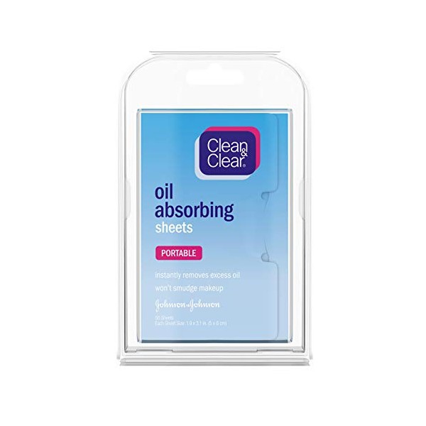 - 50-count package of Clean & Clear Oil Absorbing Facial Blotting Sheets to soak up excess oil and remove shine from face