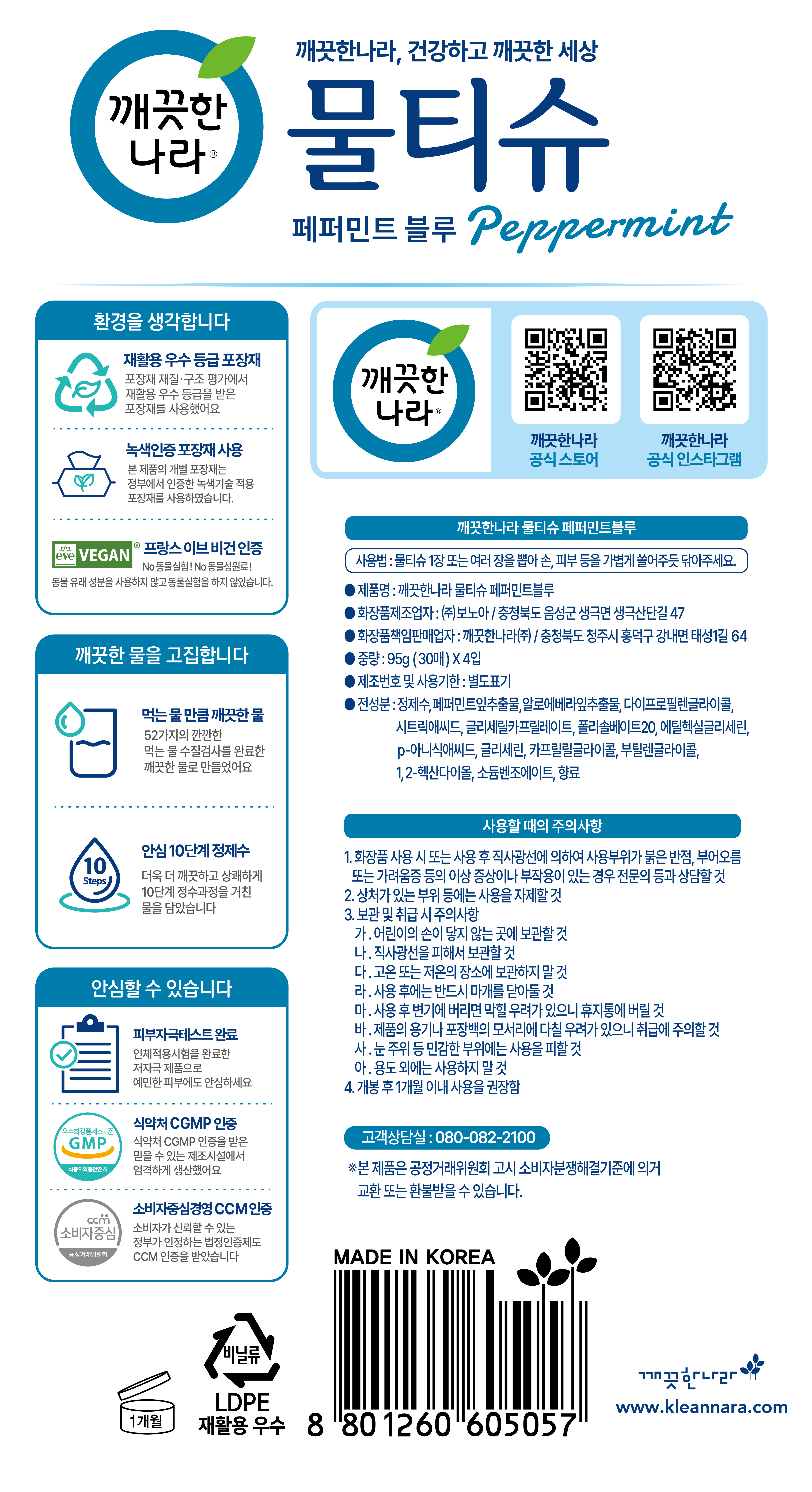 깨끗한나라 여행용 물티슈 30매 4입 1팩