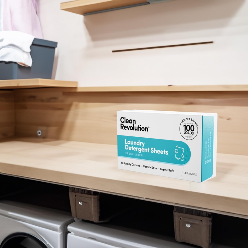 - NEW FLEX WASHING DETERGENT SHEETS: Regular laundry detergent is often 90% water, and if you over pour it can damage clothes and irritate skin. Clean Revolution Laundry Detergent Sheets are perforated and easily tears in half for lighter laundry loads.