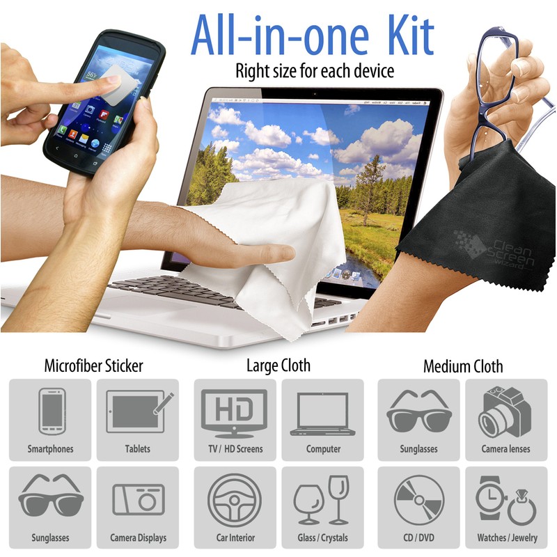 Clean Screen Wizard Microfiber Lens and Screens Cleaning Cloths and Cleaners ...