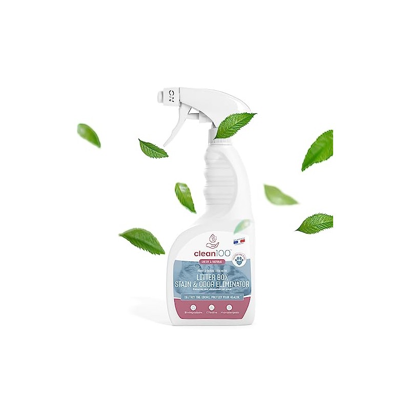 clean100 Cat Litter Box Cleaner & Urine Odor Eliminator | 100% Natural Cat Urine Enzyme Cleaner Spray - Pet Stain & Odor Remover for Carpets, Hardwoods, Clothes, Furniture (1, 25.4 FL OZ)