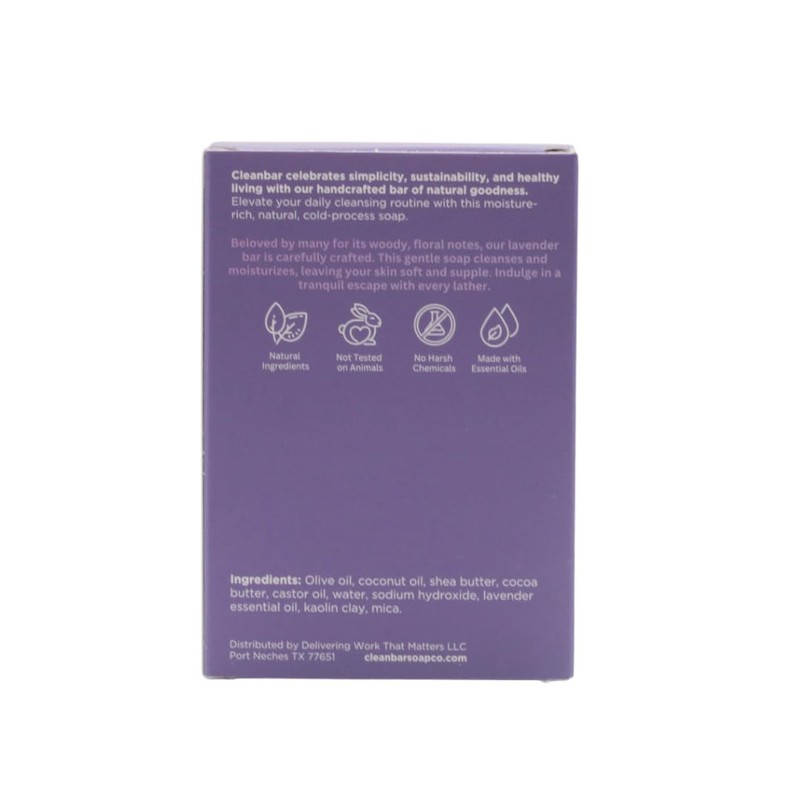 Indulge in the soothing aroma of lavender with Cleanbar's 'time to chill-ax' bar soap. This all-natural soap bar is infused with the calming scent of lavender, providing a relaxing and rejuvenating experience with every use. Crafted with care, this 4.5 oz bar gently cleanses your skin, leaving it feeling refreshed and revitalized. Unwind and let the stress melt away as the lavender fragrance envelops your senses.