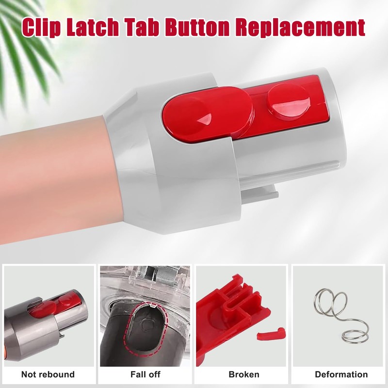 Cleaner Head Clip Latch Tab Button & Extension Wand for Dyson V7 V8 V10 V11 V15 Vacuum Cleaner Replacement, Switch Button with Spring Accessories