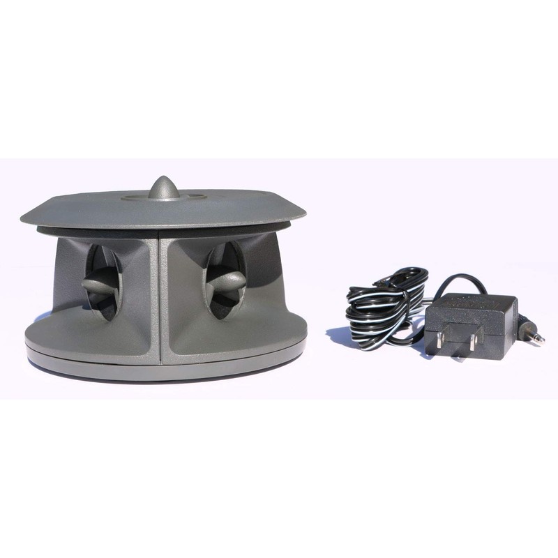 - Single vertical speaker emits squirrel-repelling sounds 180º straight up