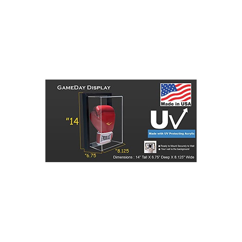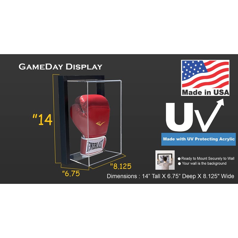 - DIMENSIONS: Premium display case measures 14 inches tall, 6.75 inches deep, and 8.125 inches wide, perfect for standard boxing gloves