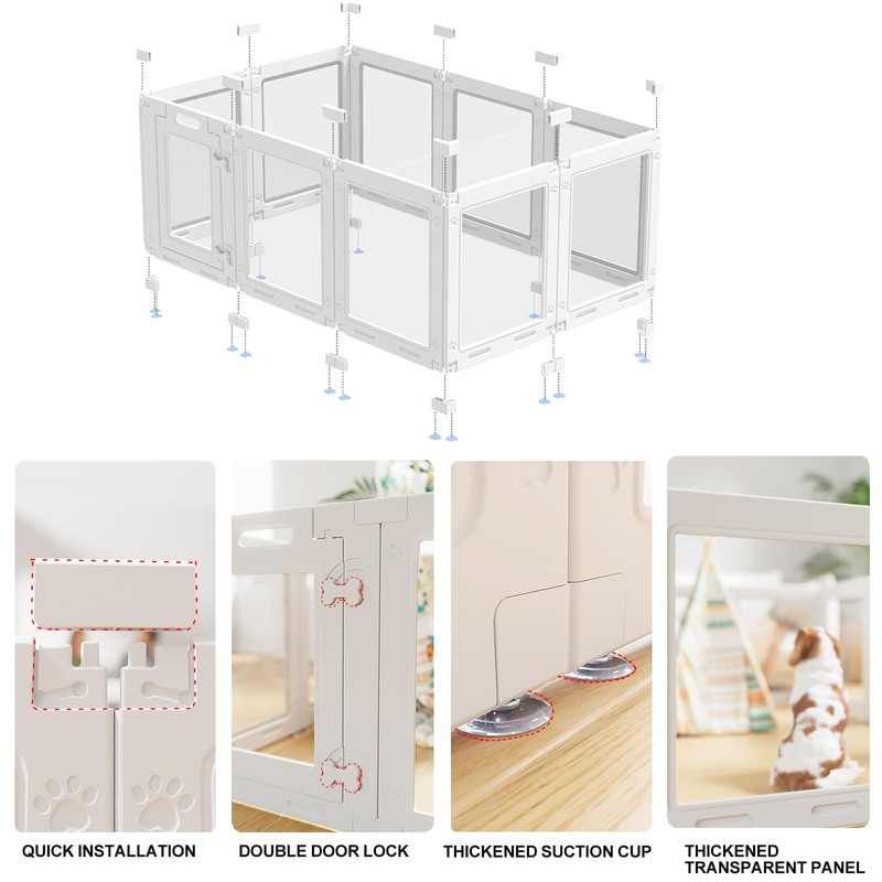 - CRYSTAL CLEAR ACRYLIC WALLS: Provides a safe, enclosed space for your pet without obstructing your view or making them feel isolated. Your puppy can always see you, reducing anxiety and barking.