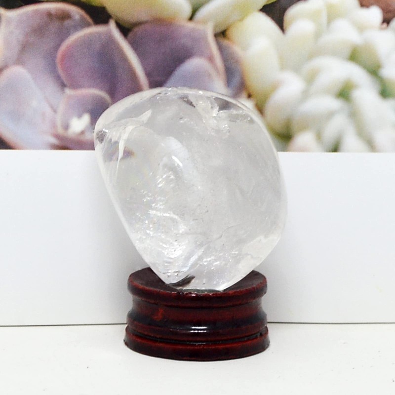 Clear Crystal Stone W Wooden Stand + Free Fengshuisale Red String Bracelet SKU:W1303