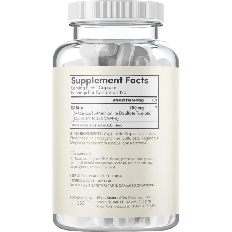Clear Formulas Bioactive SAM-e 750mg - High Strength SAM-e Supplement with Biologically Acti...