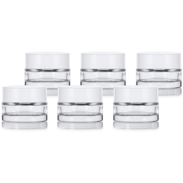JUVITUS Clear Glass 0.25 oz Thick Wall Balm Empty Jars with White Foam Lined Smooth Lids (6 pack)