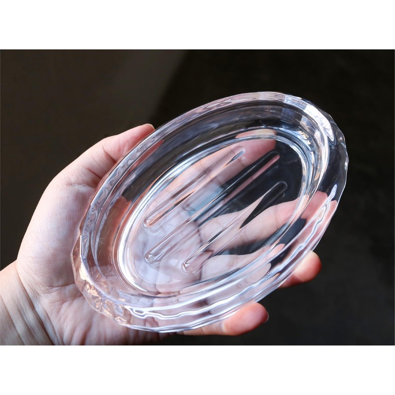 Clear Glass Soap Dish with Raised Ridges, Oval Heavy Bar Soap Holder for Bathroom Counter, Shower, Kitchen Sink