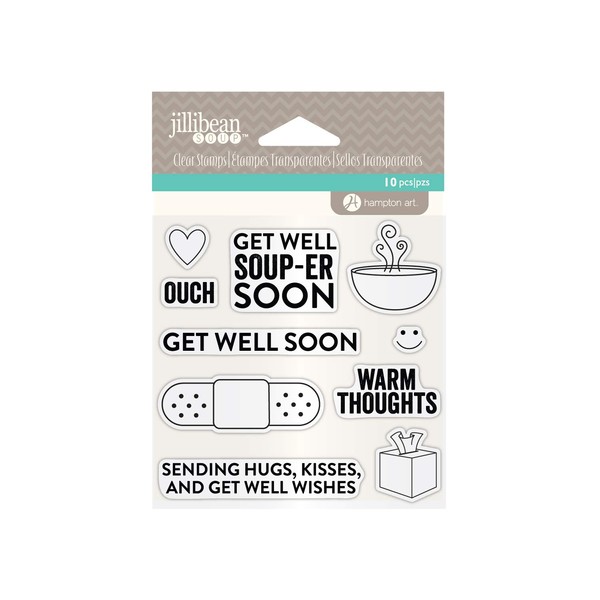 Hampton Art Clear Silicone Stamp Set Jillibean Soup for DIY Scrapbooking, Making Crafts and Decoration - Get Well Soon (10 pcs)