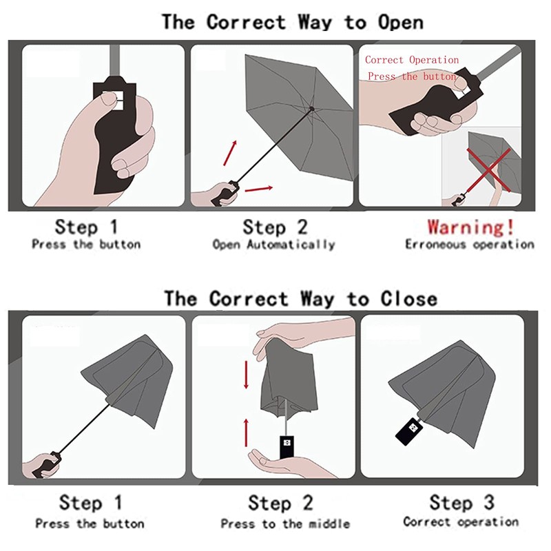 When merging, please press the close button, with both hands holding umbrella hat and umbrella handle, to the middle of the closure.