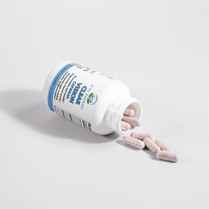 Clear Vision supplement capsules 60ct combines Vitamin C, Vitamin E, Zinc, and botanicals like Bilberry and Eyebright Extract.