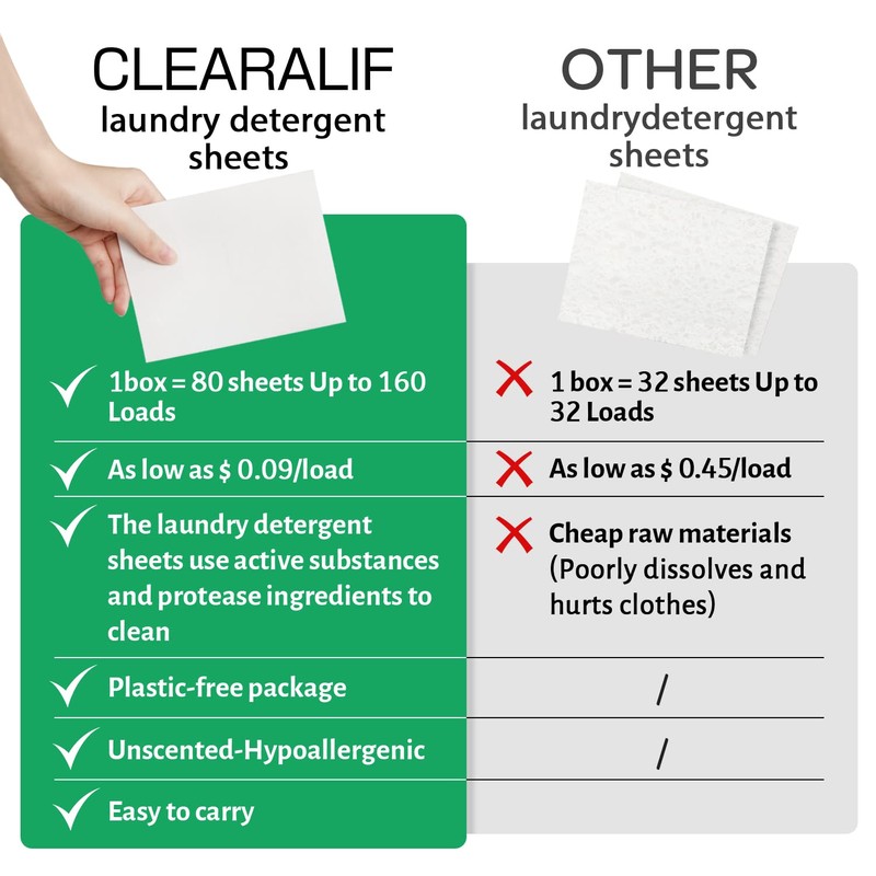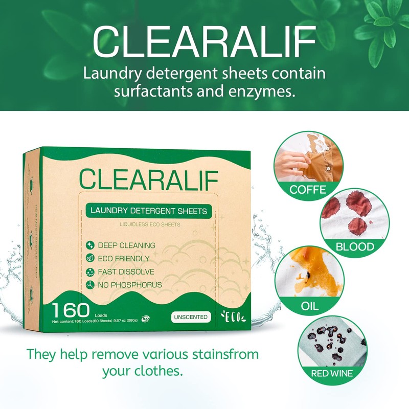 - Powerful Clean - CLEARALIF laundry detergent sheets consist of surfactants and enzymes that help remove various stains like oil, red wine, blood, and coffee from your clothes.