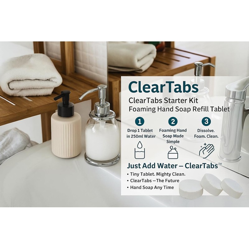 - EASY REFILL SYSTEM: Simply dissolve tablets in water to create rich, foaming hand soap, reducing plastic waste from traditional soap containers