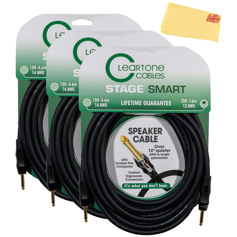 ClearTone Stage Smart Speaker Cable 25 ft- 3-Pack Bundle with Austin Bazaar Polishing Cloth